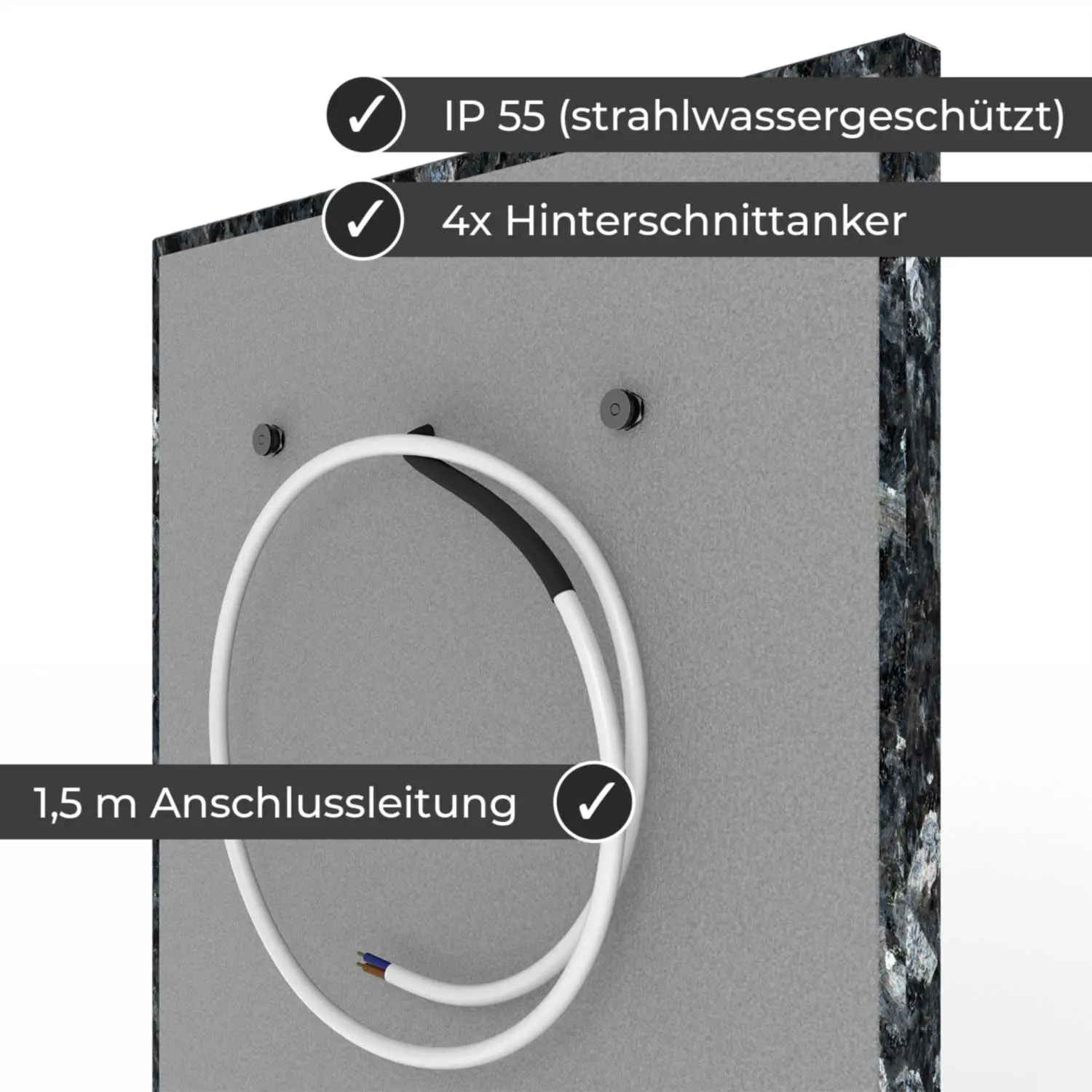 Schadstofffreie Wärmeabgabe besonders für Allergiker geeignet. Als vollwertiges Heizsystem oder als Zusatzheizung anwendbar. Herstellungsverfahren mit sehr hohem Strahlungswirkungsgrad und Teilspeicherwirkung. Nutzung von Sonderheiztarifen HT/NT, Zubehör: Rückstrahlplatte mit Alubeschichtung für Außenwände in Altbauten, Handtuchhalter, Thermostate. Spezielle Sondermaße sowie Sonderformen, Sandstrahlmotive auf der Heizung nach Anfrage erhältlich. Nach Terminvereinbarung kann Ware im Werk persönlich ausgesucht werden. Geringe Heizleiterbelastung garantiert eine sehr lange und wartungsfreie Gebrauchsdauer. 15 Jahre Garantie auf die Funktion der Heizelemente. Anforderungen nach EnEV und EEWärmeGesetz bzw. GEG können in Kombination mit anderen Haustechnikanlagen kostengünstig eingehalten werden.