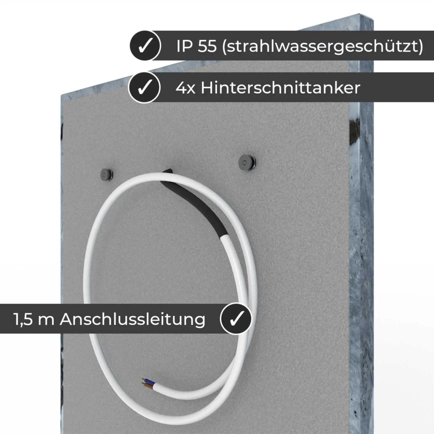 Schadstofffreie Wärmeabgabe besonders für Allergiker geeignet. Als vollwertiges Heizsystem oder als Zusatzheizung anwendbar. Herstellungsverfahren mit sehr hohem Strahlungswirkungsgrad und Teilspeicherwirkung. Nutzung von Sonderheiztarifen HT/NT, Zubehör: Rückstrahlplatte mit Alubeschichtung für Außenwände in Altbauten, Handtuchhalter, Thermostate. Spezielle Sondermaße sowie Sonderformen, Sandstrahlmotive auf der Heizung nach Anfrage erhältlich. Nach Terminvereinbarung kann Ware im Werk persönlich ausgesucht werden. Geringe Heizleiterbelastung garantiert eine sehr lange und wartungsfreie Gebrauchsdauer. 15 Jahre Garantie auf die Funktion der Heizelemente. Anforderungen nach EnEV und EEWärmeGesetz bzw. GEG können in Kombination mit anderen Haustechnikanlagen kostengünstig eingehalten werden.